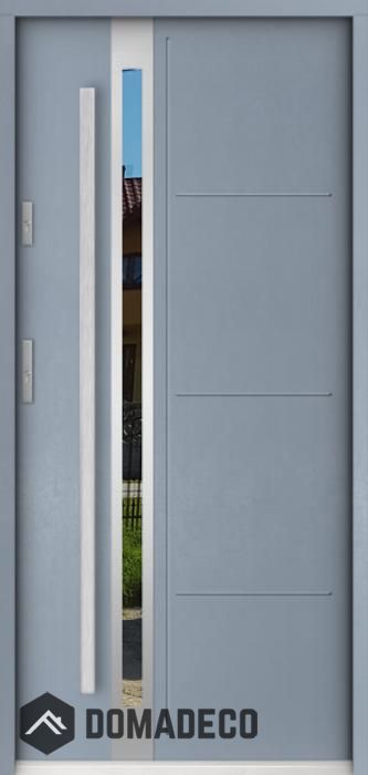 The door is made of stainless steel. Inside it is filled with PUR polyurethane foam and wood. The thickness of the door leaf is 55mm. Dual sealing system - one seal is in the dap of the frame and the other is located in the supporting part of the door leaf. They reduce vibration and protect your house from losing the heat. They don't change their volume under the influence of atmospheric conditions. The door frame has anti-burglar reinforcements in hinge parts and locking points.