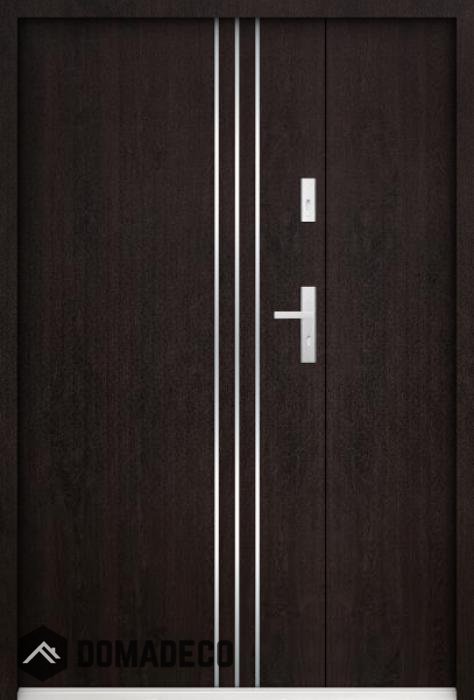 The door is made of stainless steel. Inside it is filled with PUR polyurethane foam and wood. The thickness of the door leaf is 55mm. Dual sealing system - one seal is in the dap of the frame and the other is located in the supporting part of the door leaf. They reduce vibration and protect your house from losing the heat. They don't change their volume under the influence of atmospheric conditions. The door frame has anti-burglar reinforcements in hinge parts and locking points.