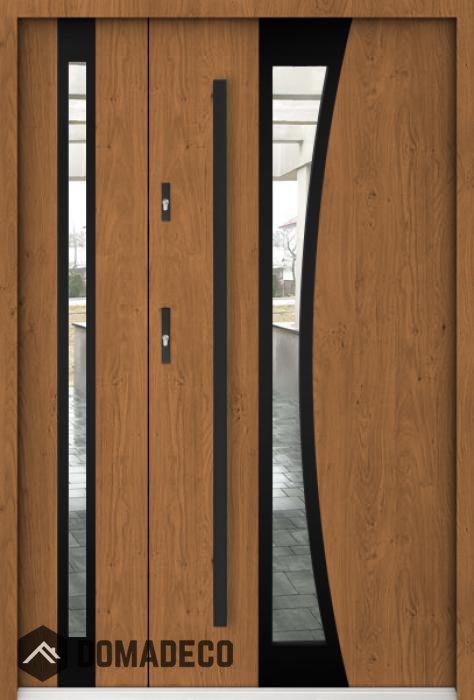 The door is made of stainless steel. Inside it is filled with PUR polyurethane foam and wood. The thickness of the door leaf is 55mm. Dual sealing system - one seal is in the dap of the frame and the other is located in the supporting part of the door leaf. They reduce vibration and protect your house from losing the heat. They don't change their volume under the influence of atmospheric conditions. The door frame has anti-burglar reinforcements in hinge parts and locking points.
