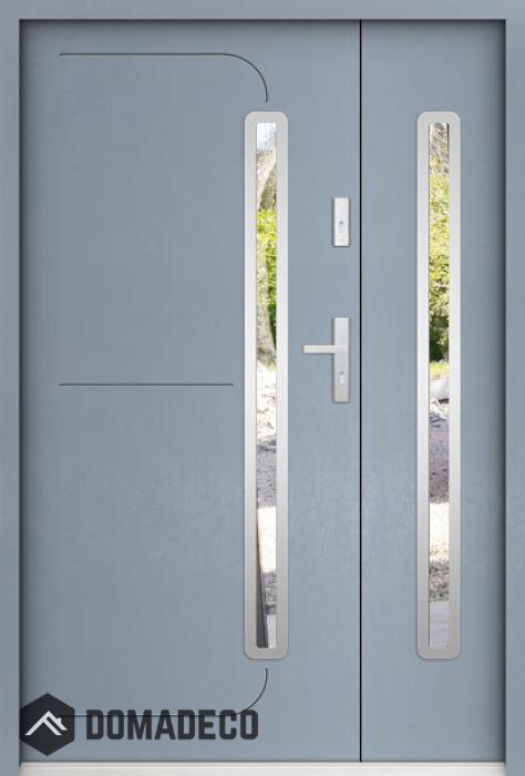 The door is made of stainless steel. Inside it is filled with PUR polyurethane foam and wood. The thickness of the door leaf is 55mm. Dual sealing system - one seal is in the dap of the frame and the other is located in the supporting part of the door leaf. They reduce vibration and protect your house from losing the heat. They don't change their volume under the influence of atmospheric conditions. The door frame has anti-burglar reinforcements in hinge parts and locking points.