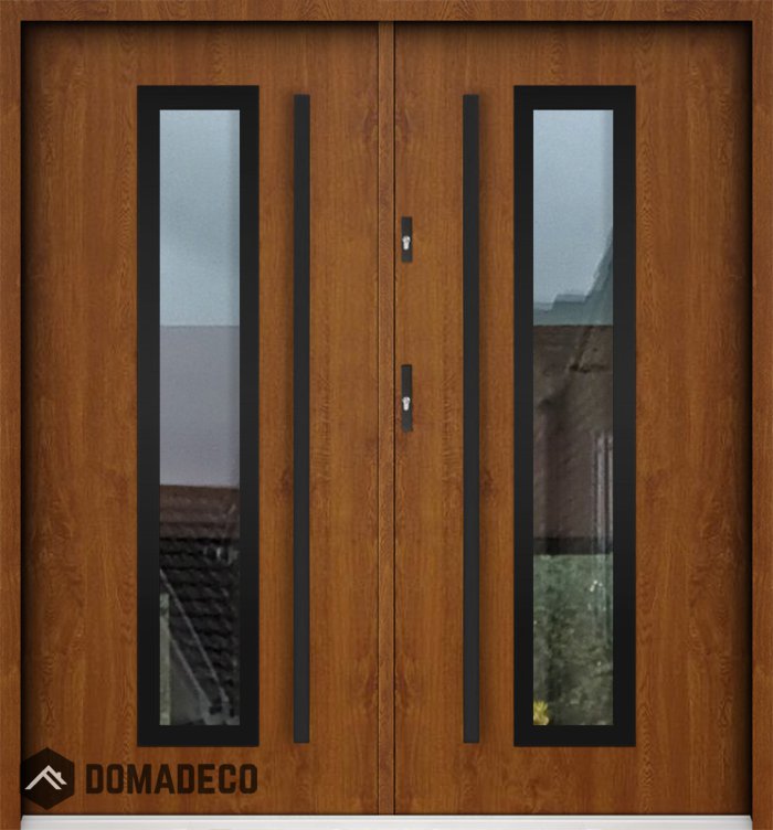 The door is made of stainless steel. Inside it is filled with PUR polyurethane foam and wood. The thickness of the door leaf is 55mm. Dual sealing system - one seal is in the dap of the frame and the other is located in the supporting part of the door leaf. They reduce vibration and protect your house from losing the heat. They don't change their volume under the influence of atmospheric conditions. The door frame has anti-burglar reinforcements in hinge parts and locking points.