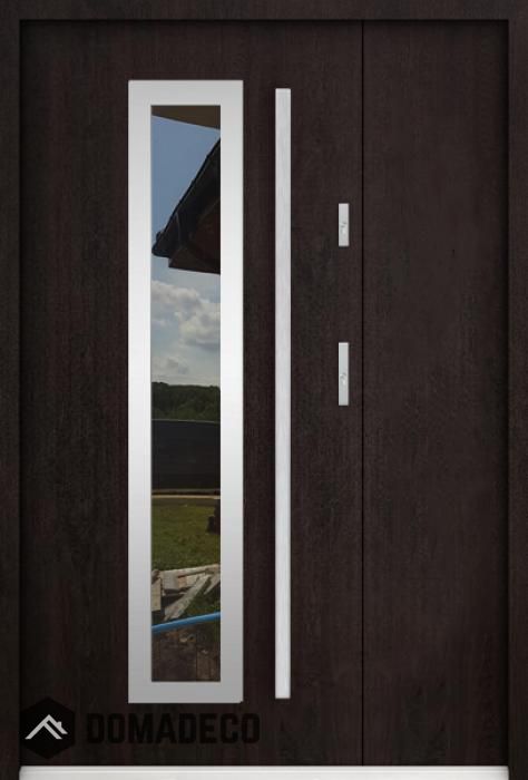 The door is made of stainless steel. Inside it is filled with PUR polyurethane foam and wood. The thickness of the door leaf is 55mm. Dual sealing system - one seal is in the dap of the frame and the other is located in the supporting part of the door leaf. They reduce vibration and protect your house from losing the heat. They don't change their volume under the influence of atmospheric conditions. The door frame has anti-burglar reinforcements in hinge parts and locking points.