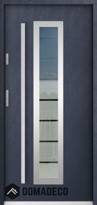 The door is made of stainless steel. Inside it is filled with PUR polyurethane foam and wood. The thickness of the door leaf is 55mm. Dual sealing system - one seal is in the dap of the frame and the other is located in the supporting part of the door leaf. They reduce vibration and protect your house from losing the heat. They don't change their volume under the influence of atmospheric conditions. The door frame has anti-burglar reinforcements in hinge parts and locking points.