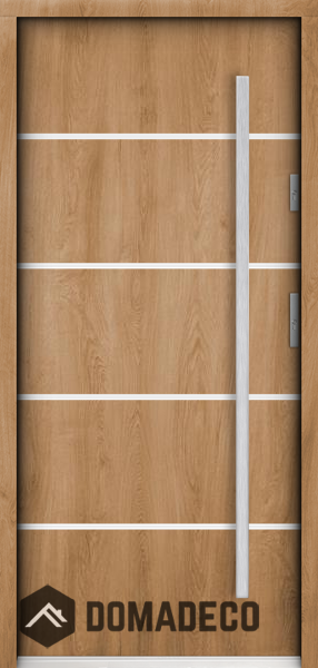 The door is made of stainless steel. Inside it is filled with PUR polyurethane foam and wood. The thickness of the door leaf is 55mm. Dual sealing system - one seal is in the dap of the frame and the other is located in the supporting part of the door leaf. They reduce vibration and protect your house from losing the heat. They don't change their volume under the influence of atmospheric conditions. The door frame has anti-burglar reinforcements in hinge parts and locking points.