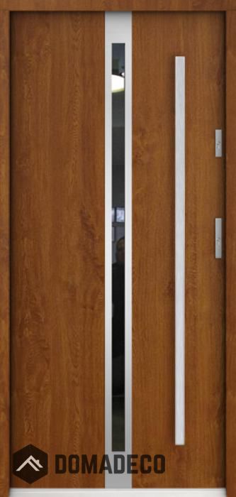 The door is made of stainless steel. Inside it is filled with PUR polyurethane foam and wood. The thickness of the door leaf is 55mm. Dual sealing system - one seal is in the dap of the frame and the other is located in the supporting part of the door leaf. They reduce vibration and protect your house from losing the heat. They don't change their volume under the influence of atmospheric conditions. The door frame has anti-burglar reinforcements in hinge parts and locking points.