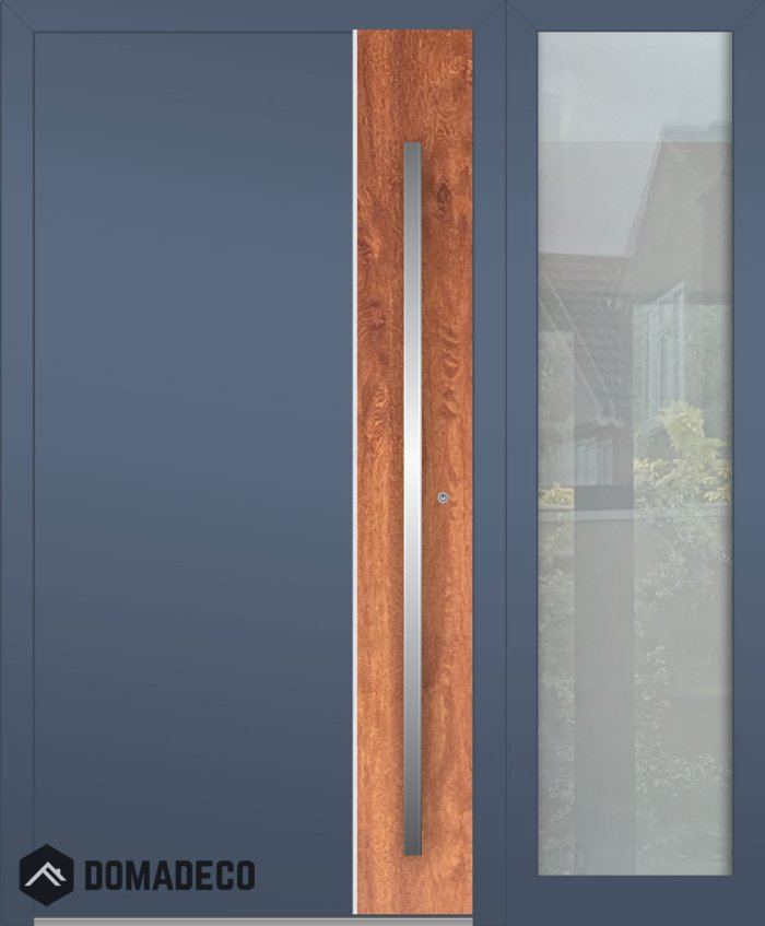 Aluminium LIM hinged door with right sidelight (view from the outside)