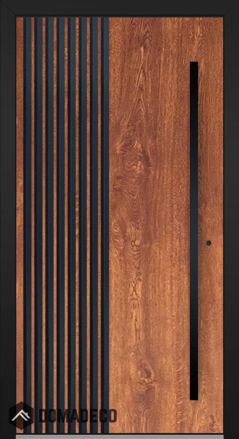 LIM RAIL6 - aluminium front door with black vertical slats made of aluminium profiles