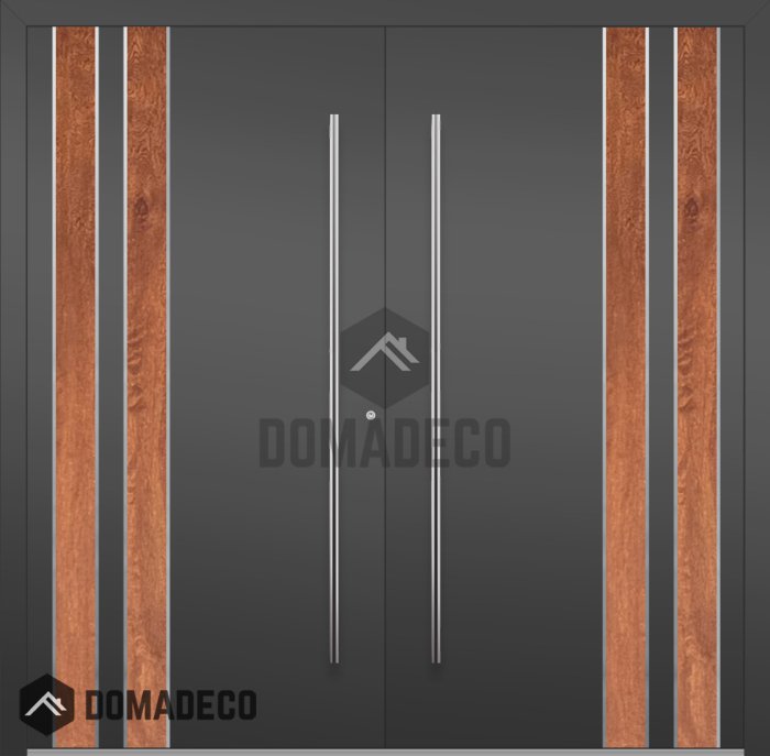 LIM v28 double - double aluminium entrance door with wooden decor