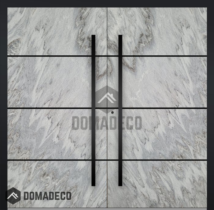 The door panels made of sintered quartz. Although quartz sinter does not occur in the natural environment, the technology of obtaining it consists in mixing and pressing, among others, shale clays, quartz sand and granite rocks. The mixture prepared in this way is hardened by firing. Door panels made of sintered quartz have an industrial, urban style, at the same time referring to exclusive and elegant interiors.