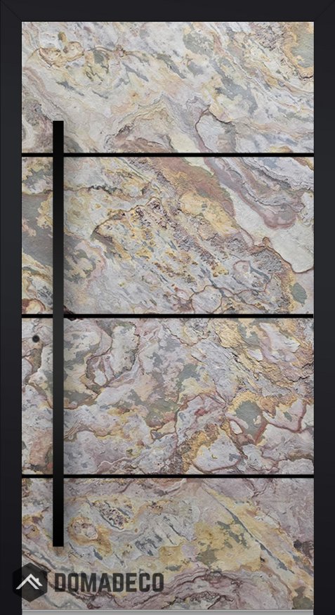 The design of stone veneer door panels evokes associations with the monumental mountain ranges of North America and vast indigenous desert expanses. It will work as a perfect complement to the architecture of a modern house or loft apartments.