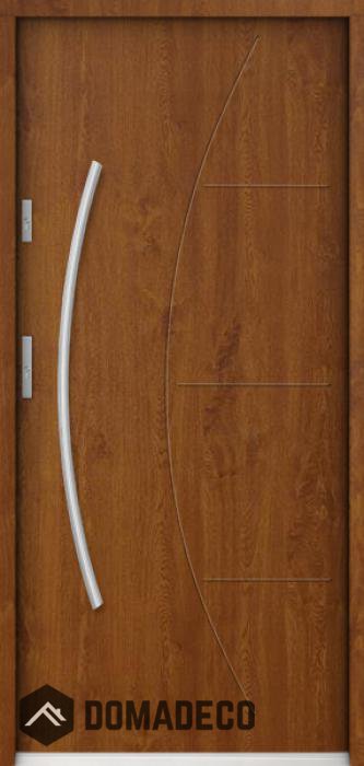 The door is made of stainless steel. Inside it is filled with PUR polyurethane foam and wood. The thickness of the door leaf is 55mm. Dual sealing system - one seal is in the dap of the frame and the other is located in the supporting part of the door leaf. They reduce vibration and protect your house from losing the heat. They don't change their volume under the influence of atmospheric conditions. The door frame has anti-burglar reinforcements in hinge parts and locking points.