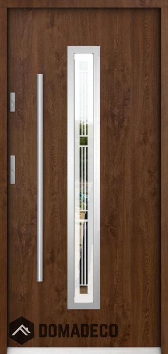 The door is made of stainless steel. Inside it is filled with PUR polyurethane foam and wood. The thickness of the door leaf is 55mm. Dual sealing system - one seal is in the dap of the frame and the other is located in the supporting part of the door leaf. They reduce vibration and protect your house from losing the heat. They don't change their volume under the influence of atmospheric conditions. The door frame has anti-burglar reinforcements in hinge parts and locking points.