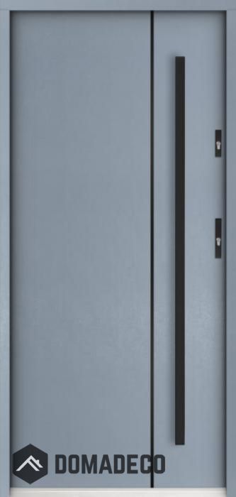 The door is made of stainless steel. Inside it is filled with PUR polyurethane foam and wood. The thickness of the door leaf is 55mm. Dual sealing system - one seal is in the dap of the frame and the other is located in the supporting part of the door leaf. They reduce vibration and protect your house from losing the heat. They don't change their volume under the influence of atmospheric conditions. The door frame has anti-burglar reinforcements in hinge parts and locking points.
