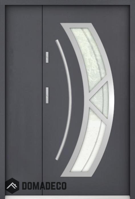 The door is made of stainless steel. Inside it is filled with PUR polyurethane foam and wood. The thickness of the door leaf is 55mm. Dual sealing system - one seal is in the dap of the frame and the other is located in the supporting part of the door leaf. They reduce vibration and protect your house from losing the heat. They don't change their volume under the influence of atmospheric conditions. The door frame has anti-burglar reinforcements in hinge parts and locking points.