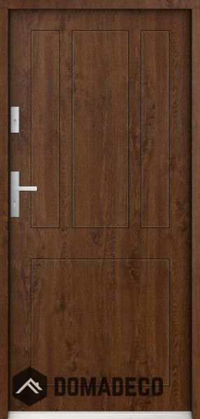 The door is made of stainless steel. Inside it is filled with PUR polyurethane foam and wood. The thickness of the door leaf is 55mm. Dual sealing system - one seal is in the dap of the frame and the other is located in the supporting part of the door leaf. They reduce vibration and protect your house from losing the heat. They don't change their volume under the influence of atmospheric conditions. The door frame has anti-burglar reinforcements in hinge parts and locking points.