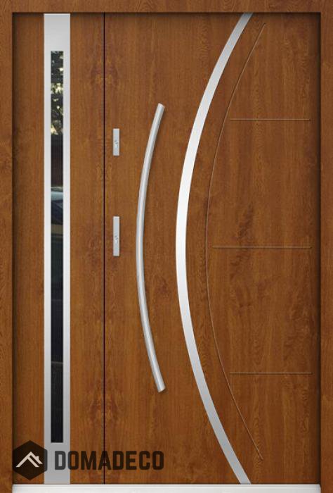 The door is made of stainless steel. Inside it is filled with PUR polyurethane foam and wood. The thickness of the door leaf is 55mm. Dual sealing system - one seal is in the dap of the frame and the other is located in the supporting part of the door leaf. They reduce vibration and protect your house from losing the heat. They don't change their volume under the influence of atmospheric conditions. The door frame has anti-burglar reinforcements in hinge parts and locking points.