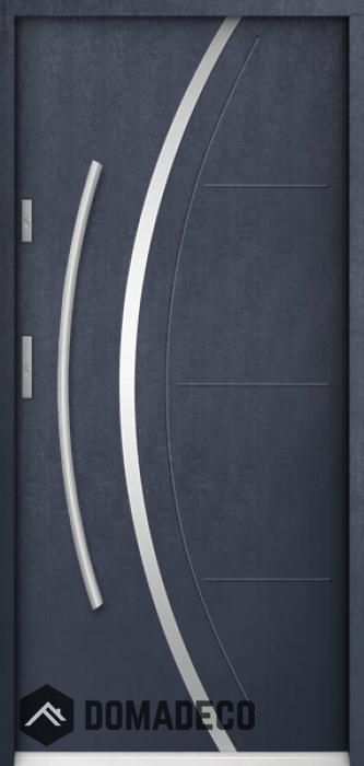 The door is made of stainless steel. Inside it is filled with PUR polyurethane foam and wood. The thickness of the door leaf is 55mm. Dual sealing system - one seal is in the dap of the frame and the other is located in the supporting part of the door leaf. They reduce vibration and protect your house from losing the heat. They don't change their volume under the influence of atmospheric conditions. The door frame has anti-burglar reinforcements in hinge parts and locking points.