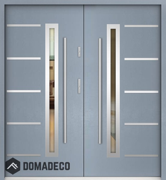 The door is made of stainless steel. Inside it is filled with PUR polyurethane foam and wood. The thickness of the door leaf is 55mm. Dual sealing system - one seal is in the dap of the frame and the other is located in the supporting part of the door leaf. They reduce vibration and protect your house from losing the heat. They don't change their volume under the influence of atmospheric conditions. The door frame has anti-burglar reinforcements in hinge parts and locking points.