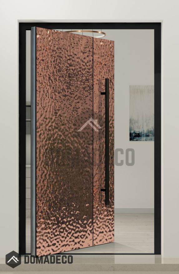 PIVOT B1 - aluminium pivot door covered with copper-plated stainless steel sheet