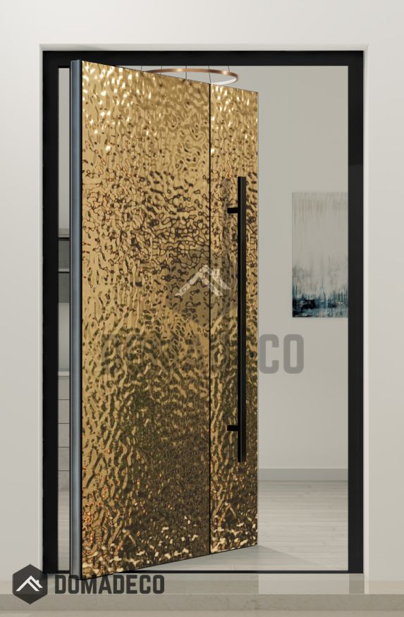 PIVOT B2 - aluminum pivot door covered with gold stainless steel sheet