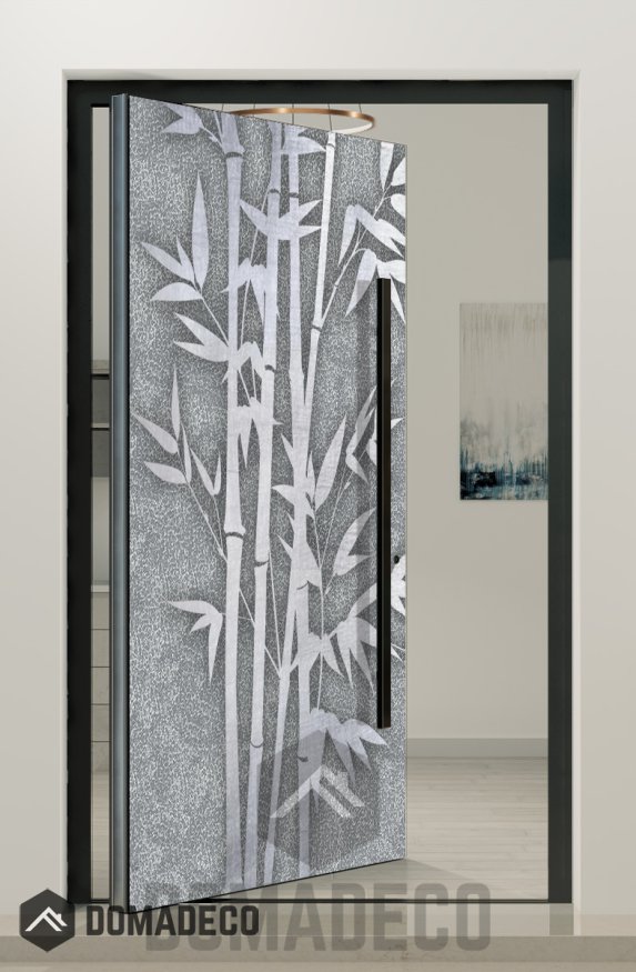 PIVOT Bamboo - pivot door with Bamboo texture of milled metal