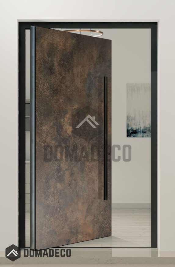 PIVOT Bruno - aluminium pivot door covered with rust sintered quartz