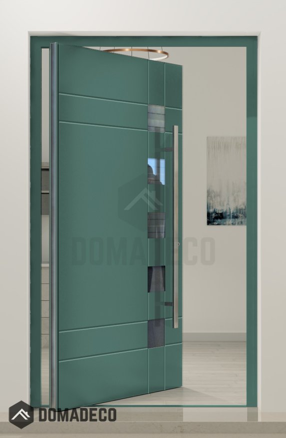 - Aluminium pivot door and the door frame;