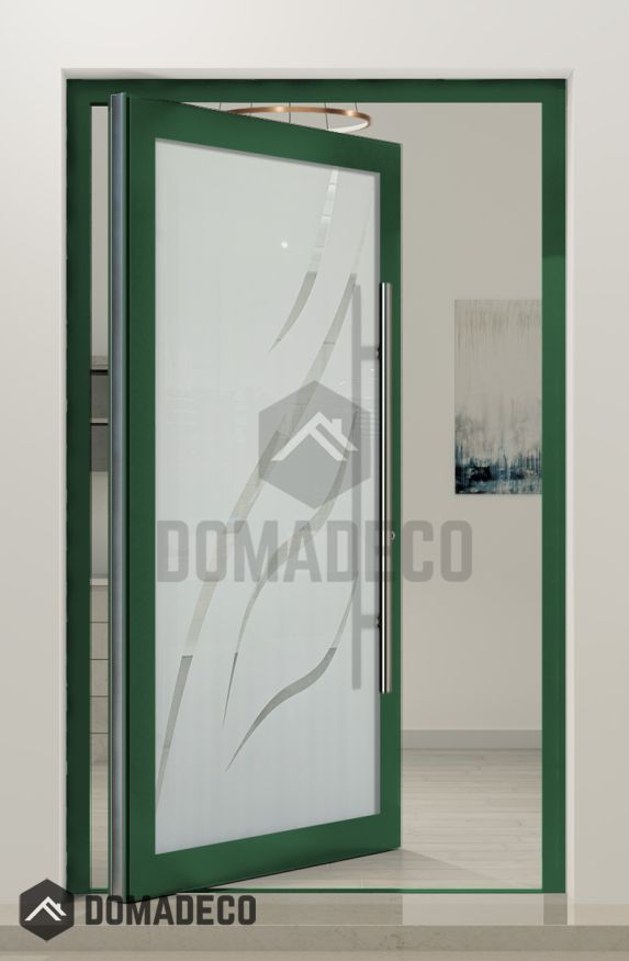 PIVOT Glass S11 - aluminium frosted pivot door with transparent decor