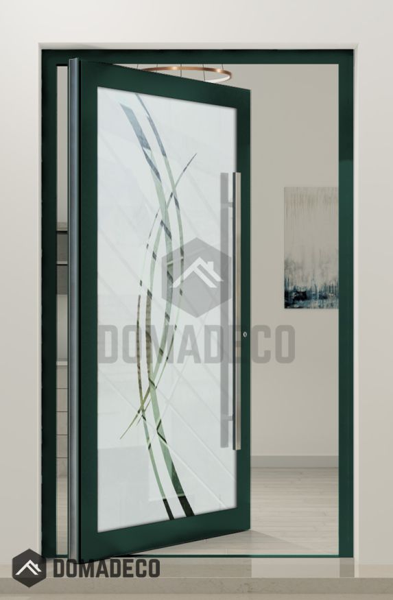 PIVOT Glass S18 - aluminium frosted pivot door with with transparent motif