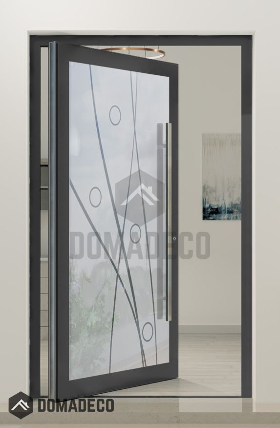PIVOT Glass S22 - aluminium frosted pivot door with with transparent motif