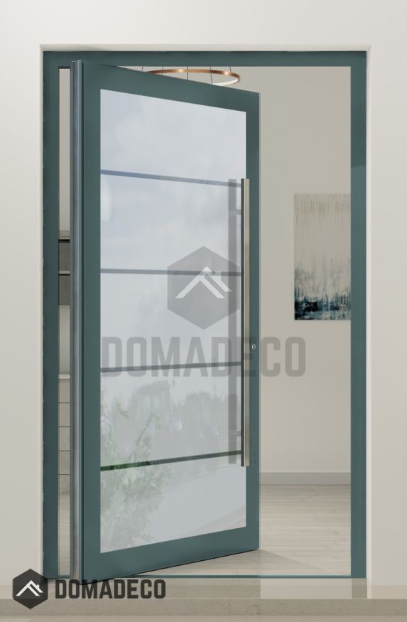 PIVOT Glass S4 - aluminium frosted pivot door with four transparent stripe