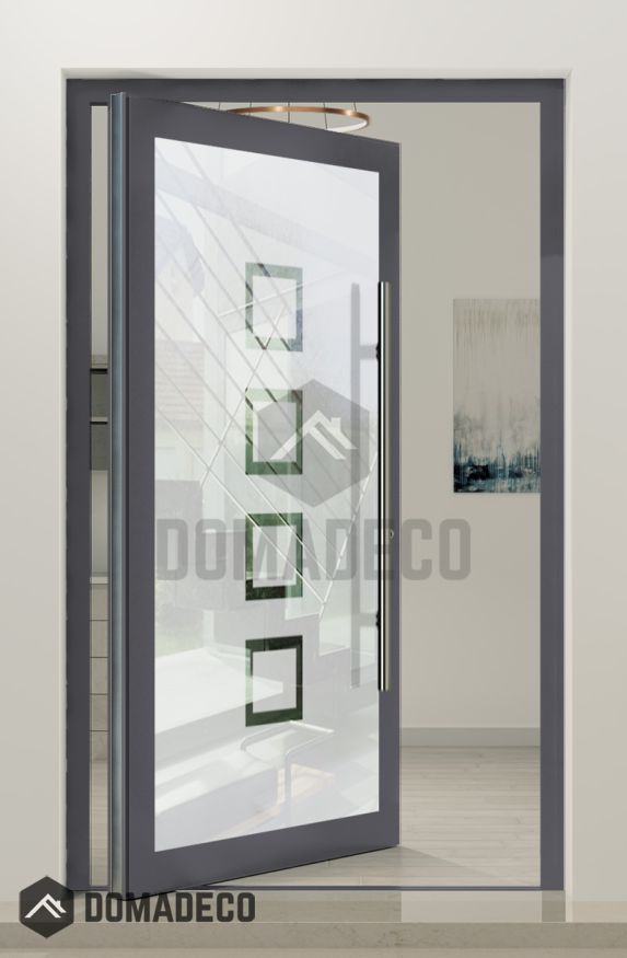 PIVOT Glass S8 - aluminium frosted pivot door with with transparent squares
