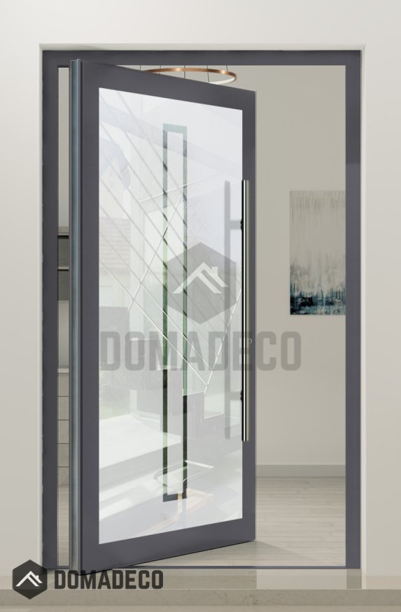 PIVOT Glass S9 - aluminium frosted pivot door with with transparent rectangle