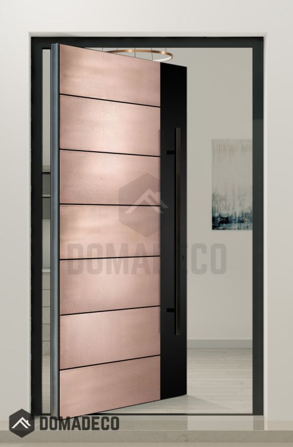 PIVOT M15 - aluminium pivot door with copper texture of milled metal