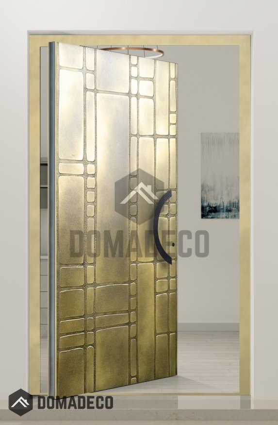 PIVOT M18 - aluminium pivot door with yellow brass texture of milled metal