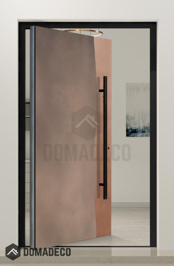 PIVOT M25 - aluminium pivot door with copper and aged bronze liquid metal