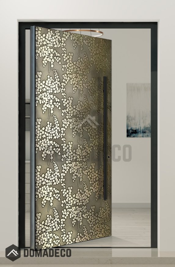 PIVOT M28 - aluminium pivot door with brass texture of milled metal