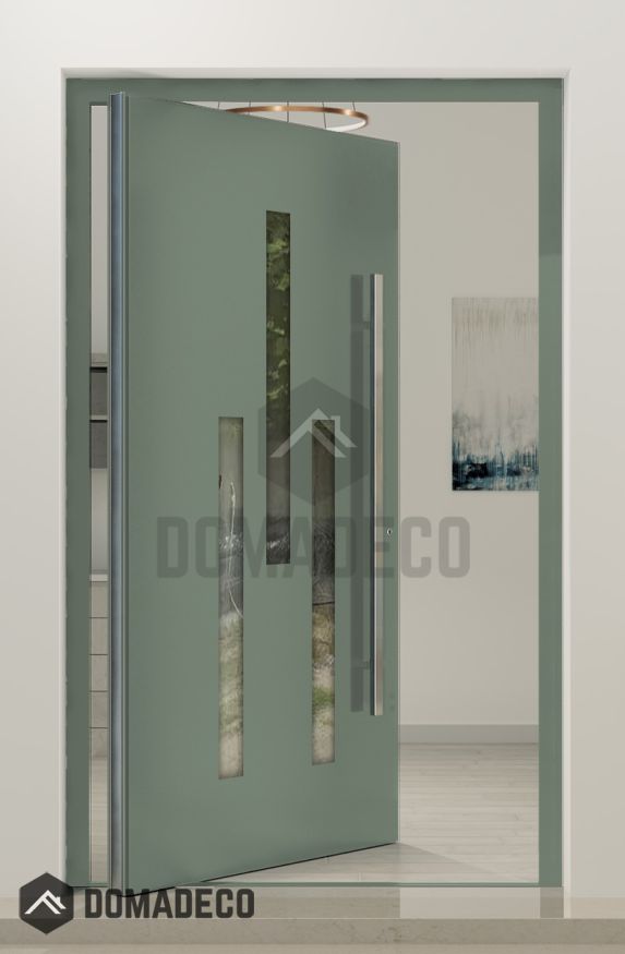 - Aluminium pivot door and the door frame;