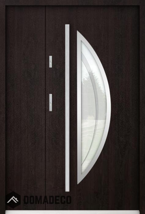The door is made of stainless steel. Inside it is filled with PUR polyurethane foam and wood. The thickness of the door leaf is 55mm. Dual sealing system - one seal is in the dap of the frame and the other is located in the supporting part of the door leaf. They reduce vibration and protect your house from losing the heat. They don't change their volume under the influence of atmospheric conditions. The door frame has anti-burglar reinforcements in hinge parts and locking points.