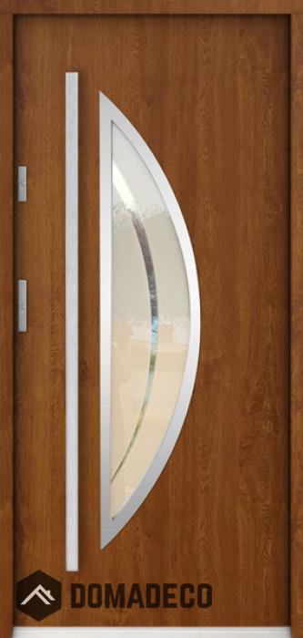 The door is made of stainless steel. Inside it is filled with PUR polyurethane foam and wood. The thickness of the door leaf is 55mm. Dual sealing system - one seal is in the dap of the frame and the other is located in the supporting part of the door leaf. They reduce vibration and protect your house from losing the heat. They don't change their volume under the influence of atmospheric conditions. The door frame has anti-burglar reinforcements in hinge parts and locking points.