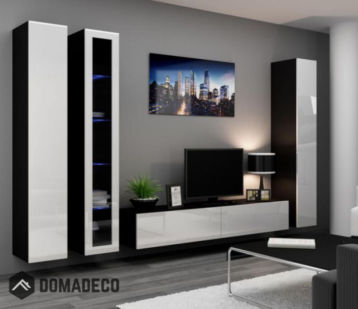 2 x Closed Wall hanging Cabinet - 180/40/30 cm - 70,9"/15,7"/11,8" - front in gloss, door open system "PUSH-CLICK", inside 4 shelves