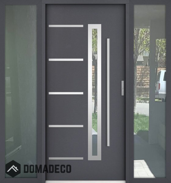 custom configuration - STA modern steel door with left and right sidelight / glass panel