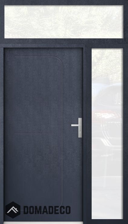 custom configuration - STA steel front door with right and top glass panel (view from the outside)